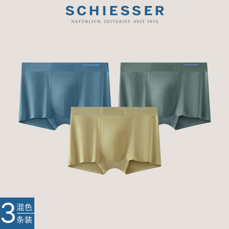 3条装SCHIESSER舒雅男士50S天丝莫代尔无痕中腰平角内裤大码内裤