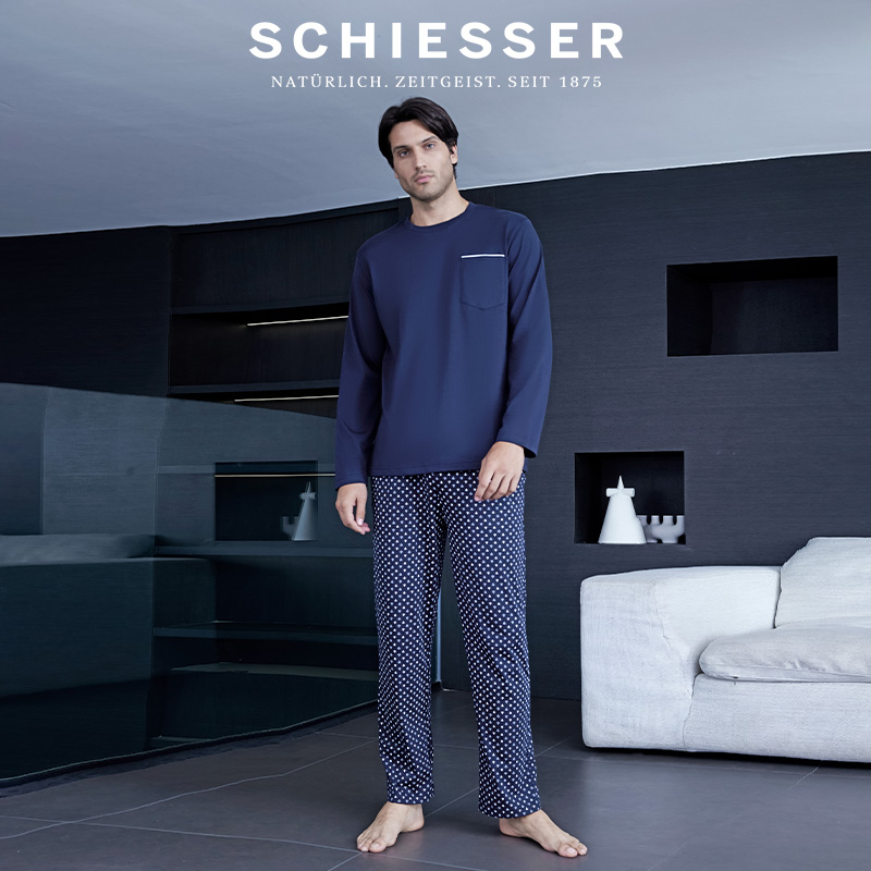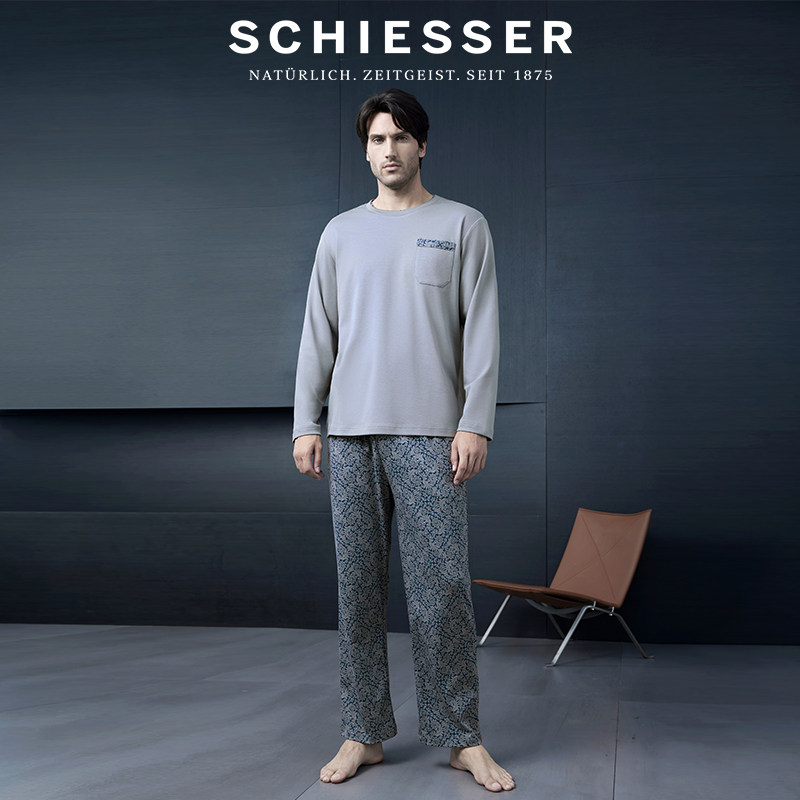 SCHIESSER舒雅男士40S纯棉双面布圆领长袖睡衣家居服套装21697H