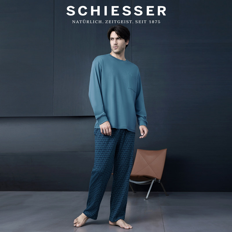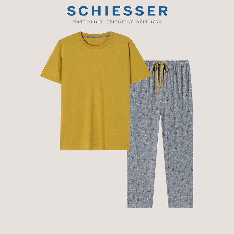 SCHIESSER舒雅男士40S纯棉双面布印花圆领睡衣家居服套装21669H