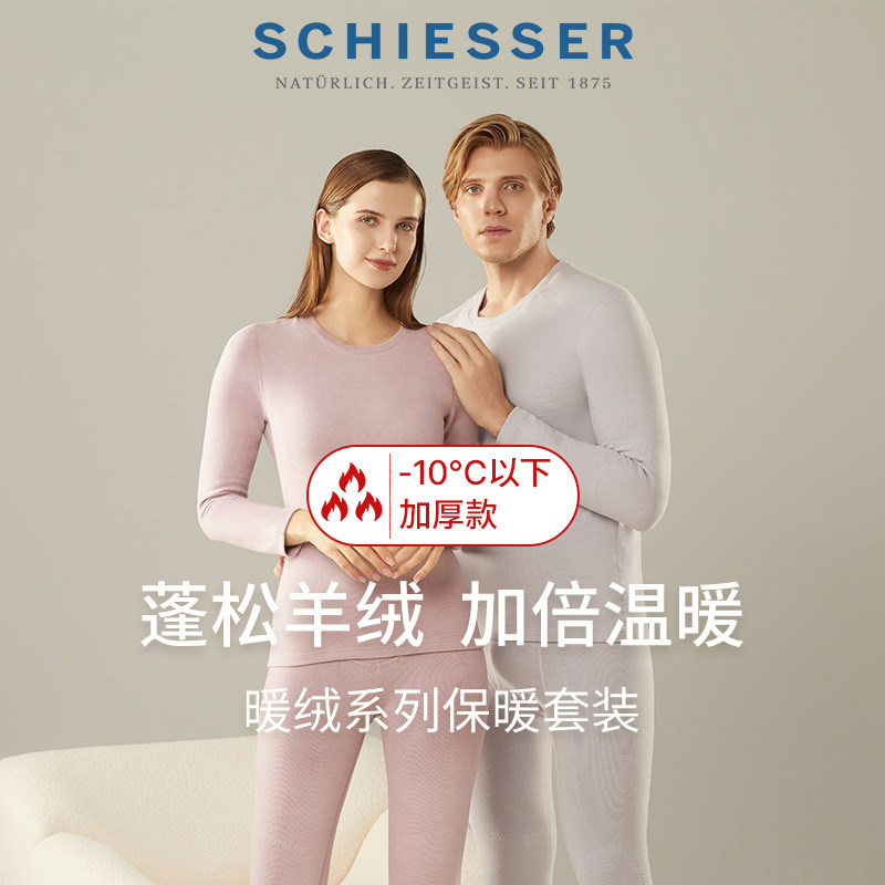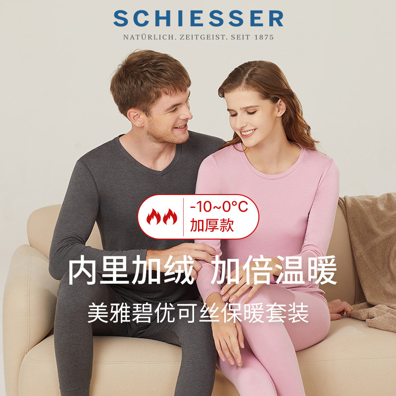 SCHIESSER舒雅男女士3A抗菌抗起球磨毛蓄热秋衣秋裤保暖内衣套装