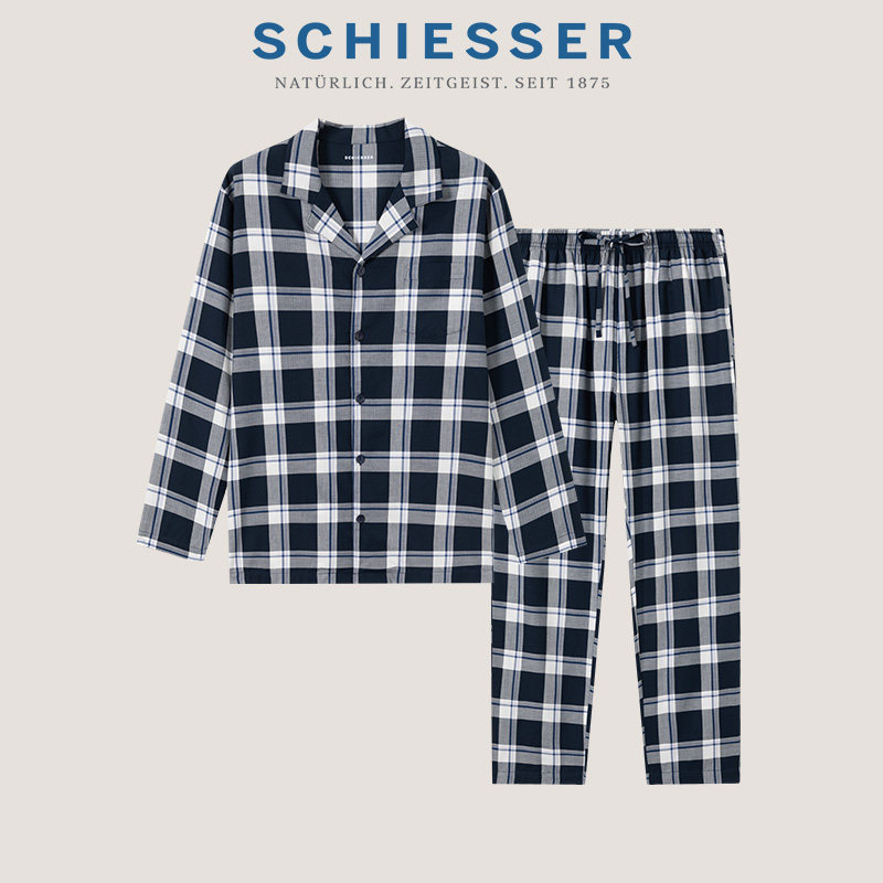 SCHIESSER舒雅24年早春新品男士纯棉梭织翻领睡衣家居服套装22438