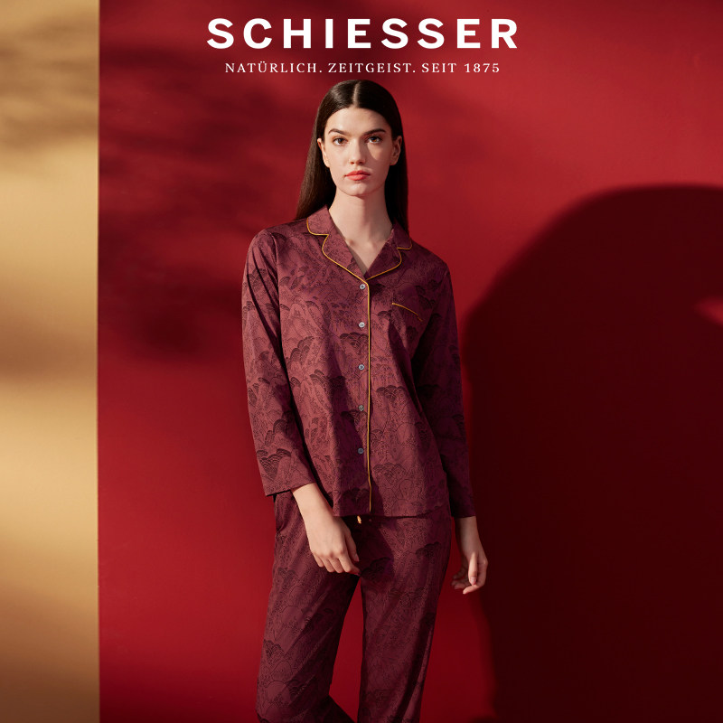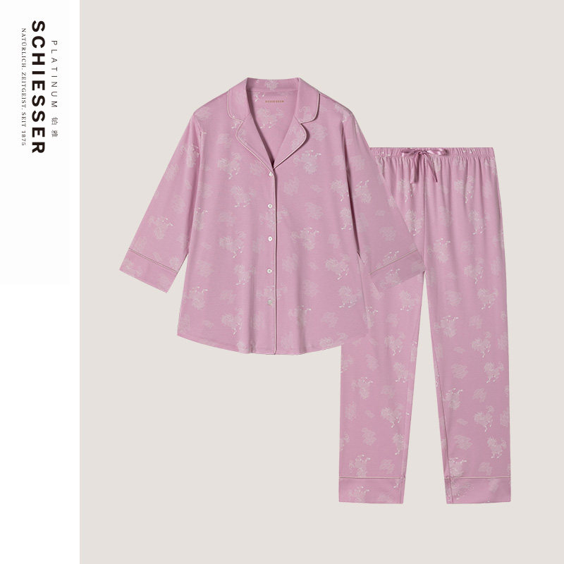 SCHIESSER舒雅铂雅御印系列女士纯棉80S丝光棉睡衣家居套装21847H