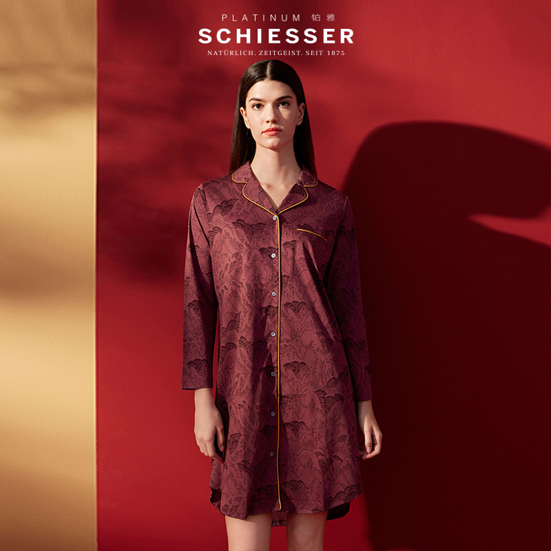 SCHIESSER舒雅铂雅女士御印系列80S丝光纯棉印花家居服睡裙21848D