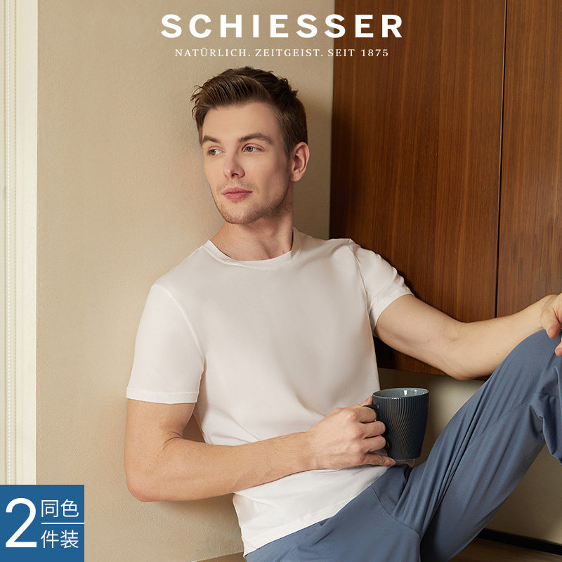 SCHIESSER舒雅男士40S纯棉双面布亲肤圆领睡衣家居服套装21698H