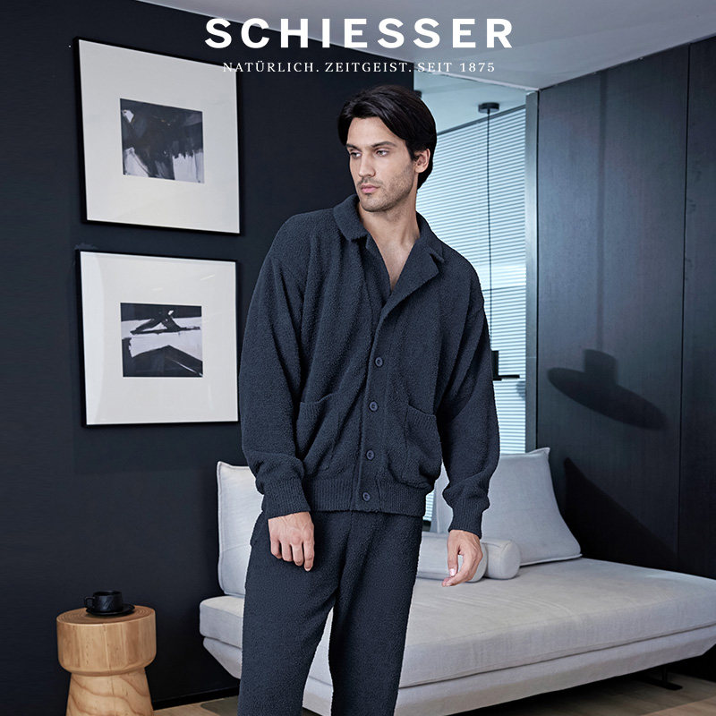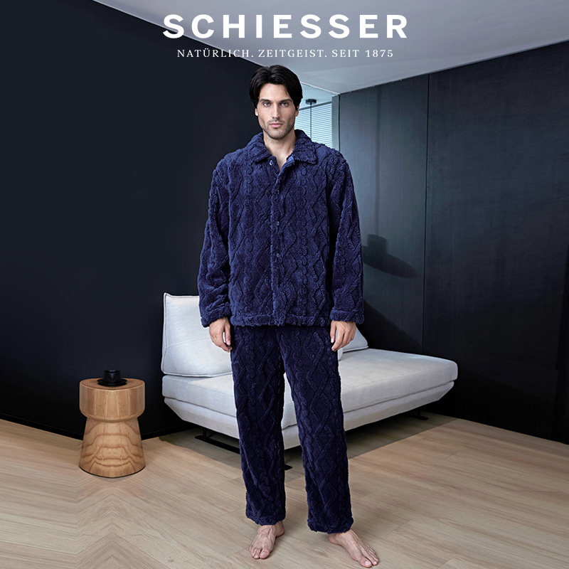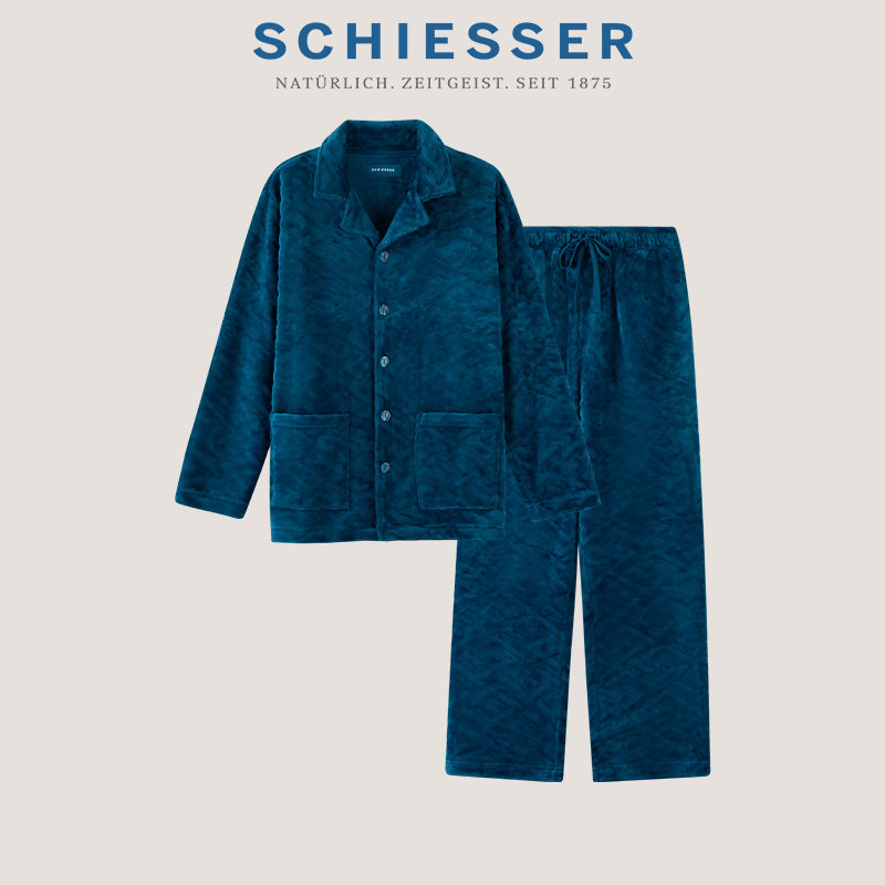 SCHIESSER舒雅男士半边绒加绒加厚小翻领睡衣家居服套装21817H