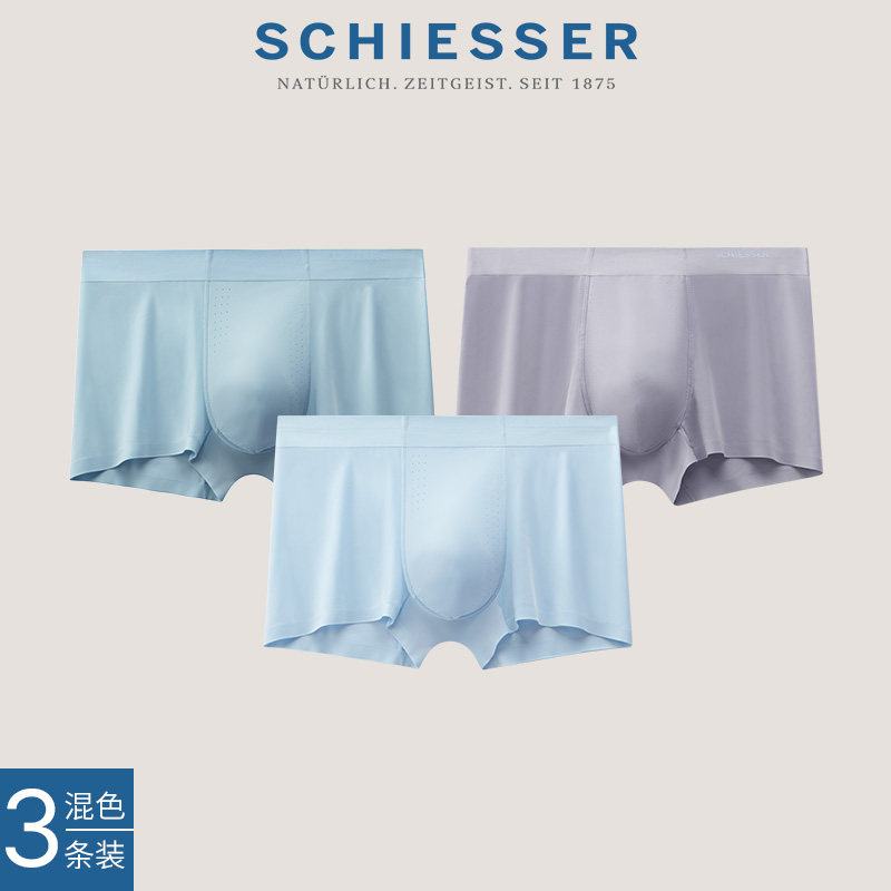 3条装SCHIESSER舒雅男士冰丝3A抗菌抑菌亲肤透气平角内裤21318T
