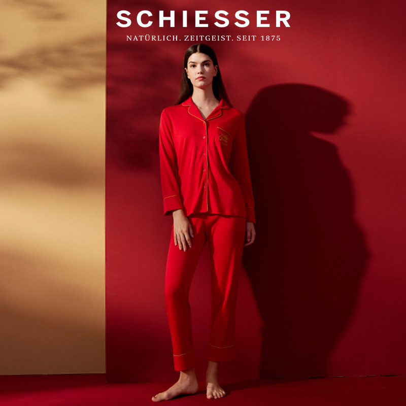 SCHIESSER舒雅女士抗菌棉莫代尔新婚红色本命年鸿运家居套装22132