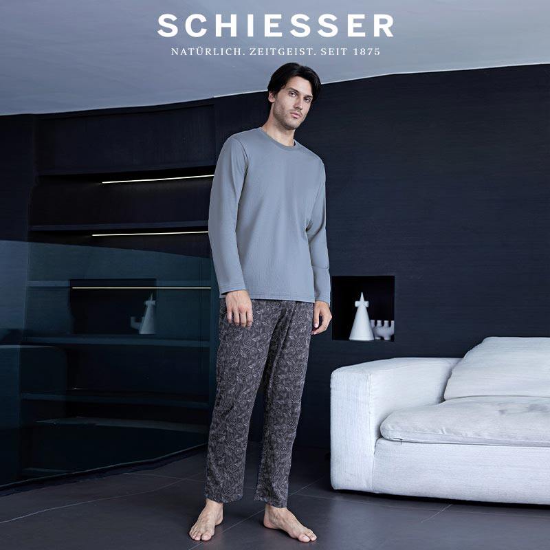 SCHIESSER舒雅24年早春新品男士纯棉圆领睡衣家居服套装22566H