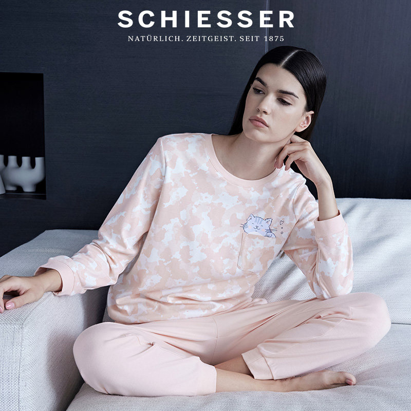 SCHIESSER舒雅女士40S纯棉双面布印花圆领睡衣家居服套装21447H