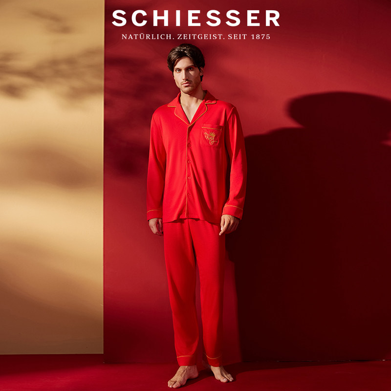 SCHIESSER舒雅男士抗菌棉莫代尔新婚红色本命年鸿运家居套装22131
