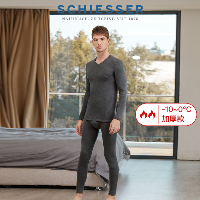 SCHIESSER舒雅男士远红外暖肤绒3A抗菌随型裁保暖内衣套装21885W