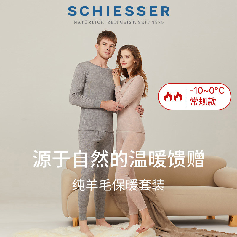 SCHIESSRE舒雅男士可机洗美丽诺纯羊毛秋衣秋裤保暖内衣套装