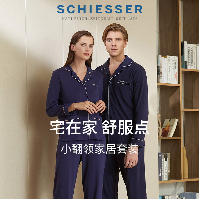 SCHIESSER舒雅男女士40S棉莫代尔翻领可外穿长袖睡衣家居服套装