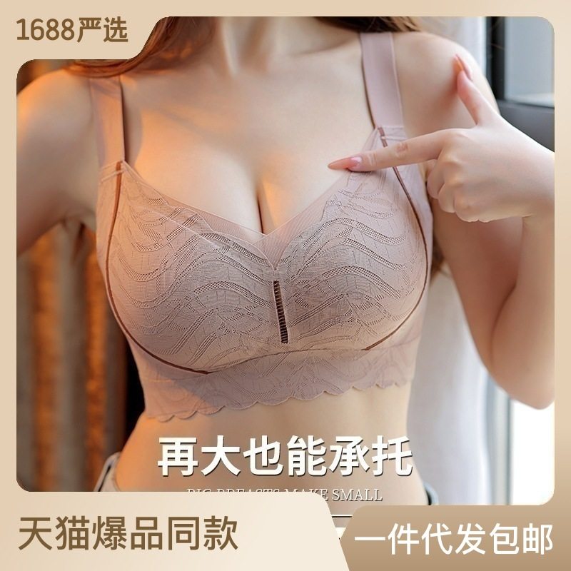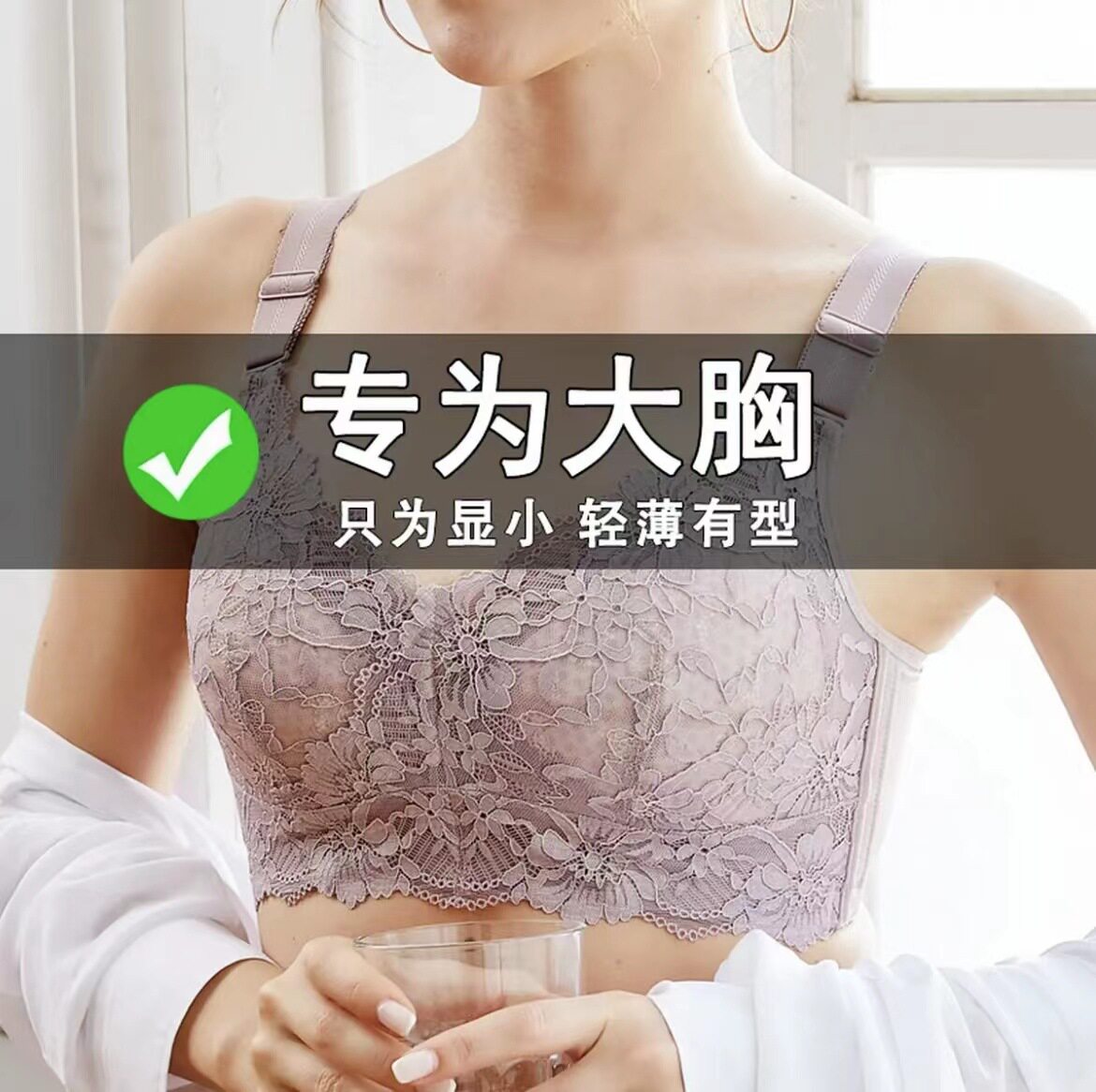 【爆款优惠促销】抖音爆款大胸显小文胸蕾丝无钢圈超薄透气罩杯聚