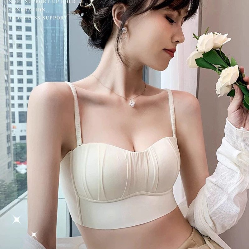 无肩带内衣女抹胸裹胸大胸显小胸防走光无痕无钢圈夏季薄款文胸罩