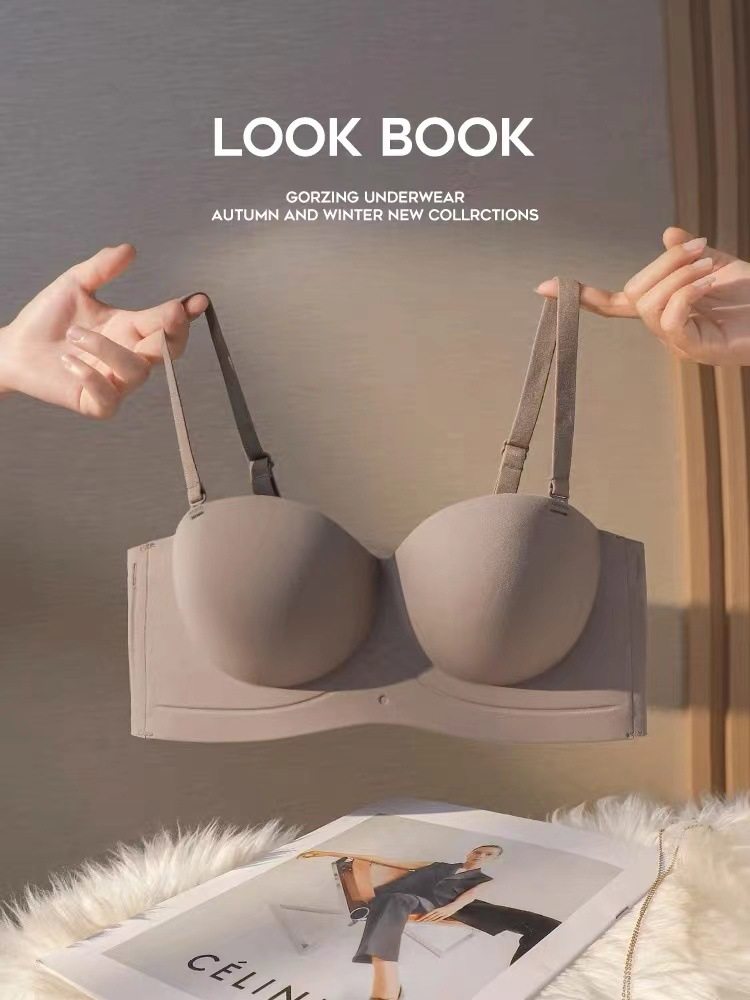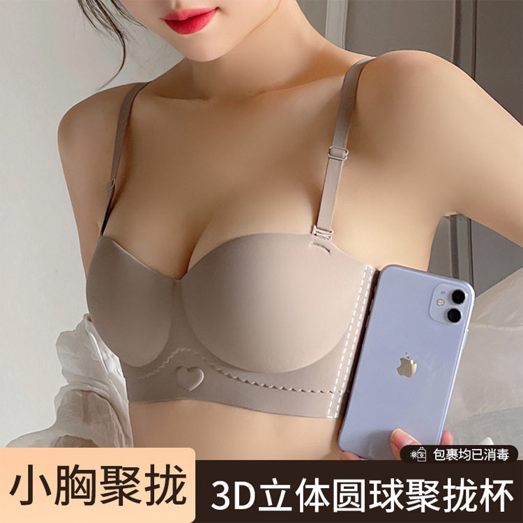 无痕无肩带内衣女秋冬小胸聚拢无钢圈胸罩上托调整型防滑美背文胸