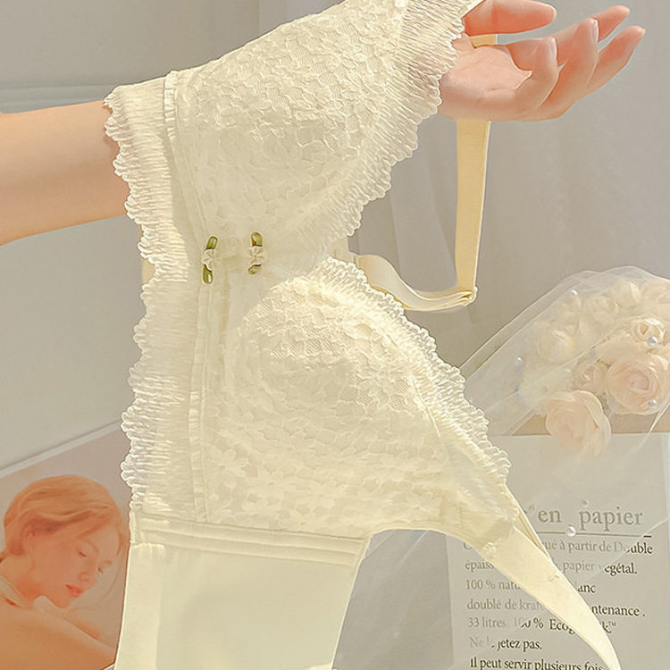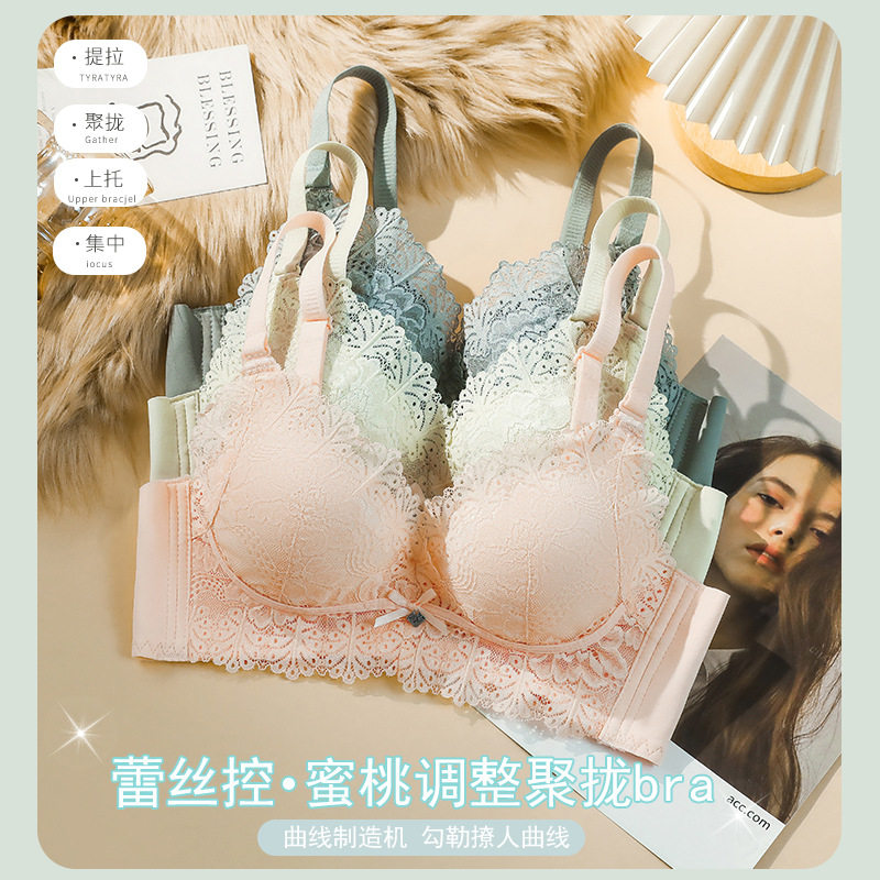 莫代尔内衣女小胸聚拢无钢圈收副乳防下垂性感蕾丝文胸罩夏季