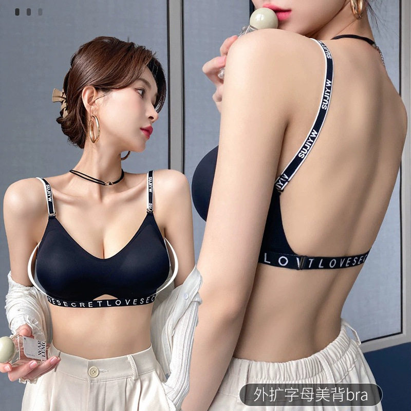 U型美背漫画外扩内衣女小胸聚拢显大无钢圈收副乳文胸大露背专用