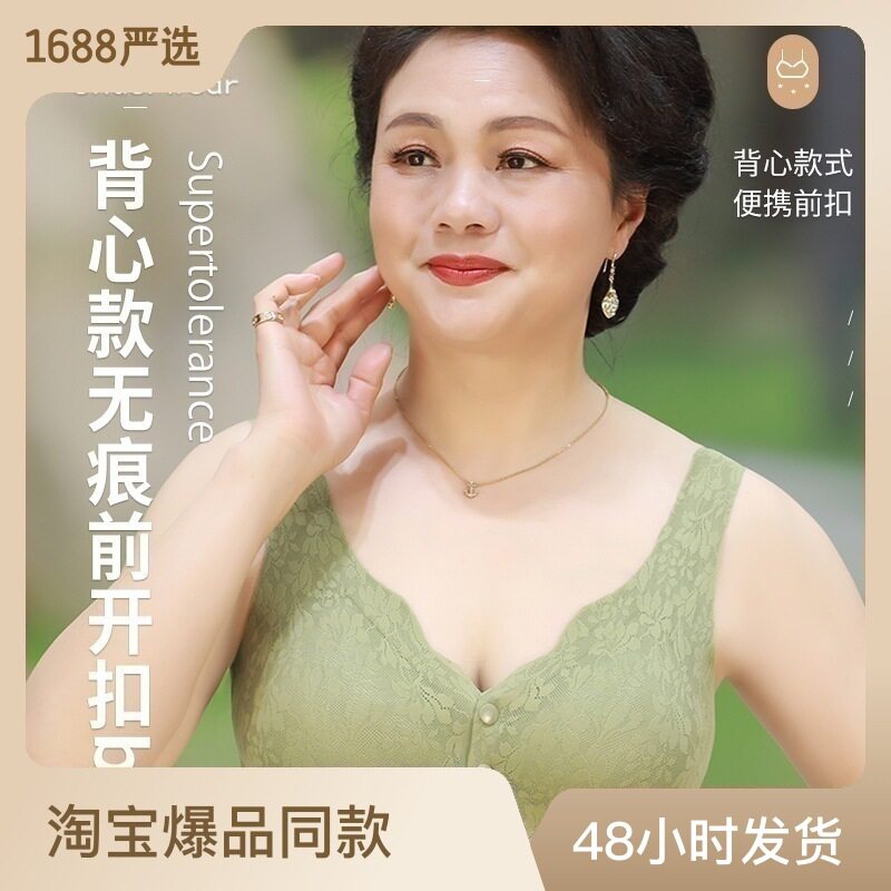 妈妈内衣女中年妇女中老年人女士无钢圈前扣背心式大码文胸透气夏