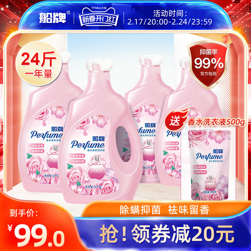 船牌香水洗衣液24斤抑菌香味持久整箱批家用实惠装香氛除螨洗衣液
