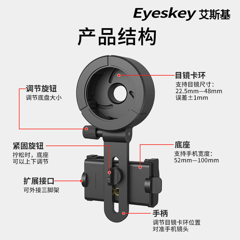 艾斯基望远镜手机夹可调节拍照录像单筒双筒天文望远镜显微镜通用