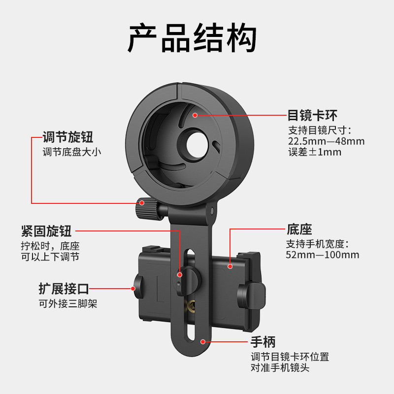 望远镜手机架夹艾斯基录像可调节单筒双筒天文望远镜显微镜通用