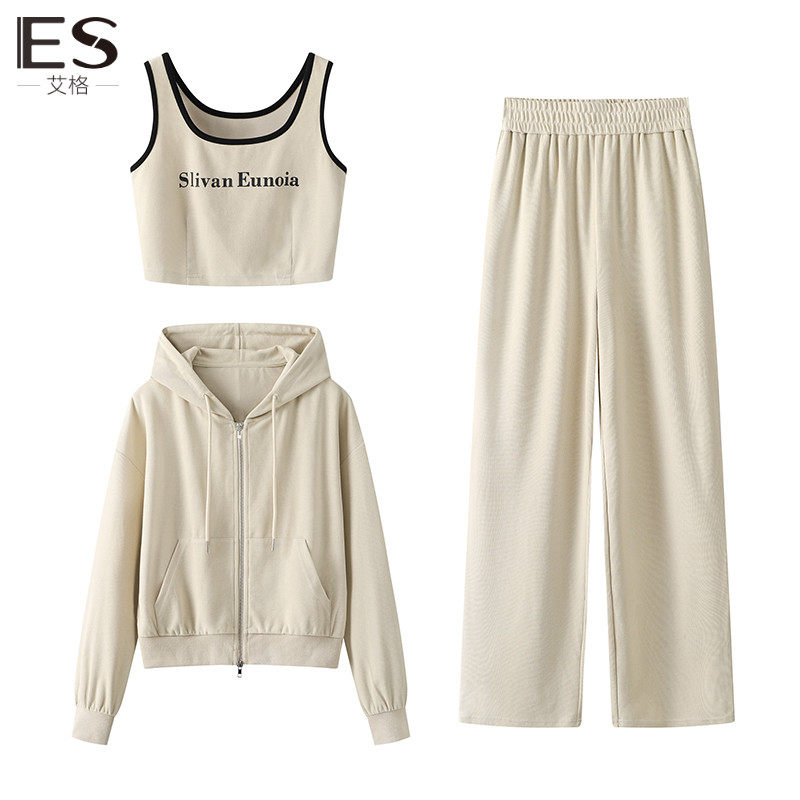 Etam/艾格ES运动套装2023秋季新款三件套休闲卫衣外套阔腿裤女