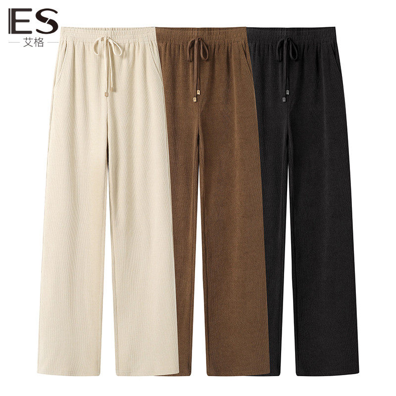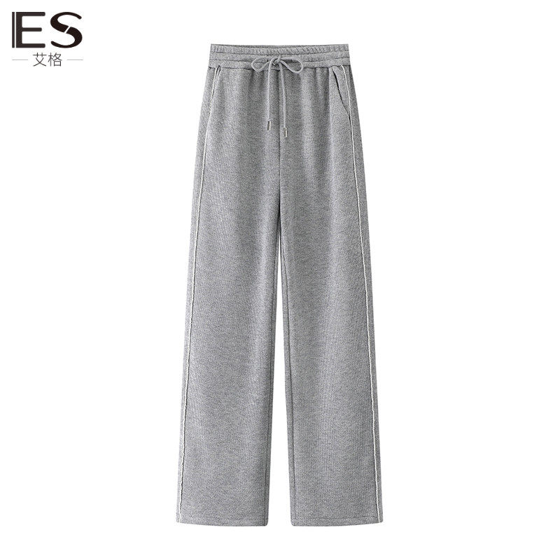 艾格ES直筒休闲加绒糯米裤女高腰2023秋冬季新款裤子宽松垂坠感长