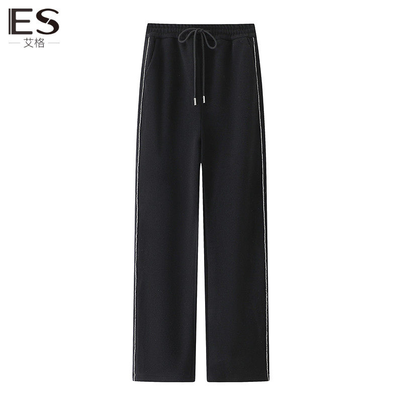 Etam/艾格女装2023秋季新款时尚休闲直筒撞色斯文针织长裤