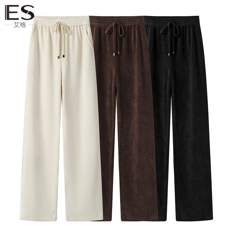 艾格ES雪尼尔休闲裤女2023冬季新款抽绳裤子百搭显瘦阔腿拖地裤