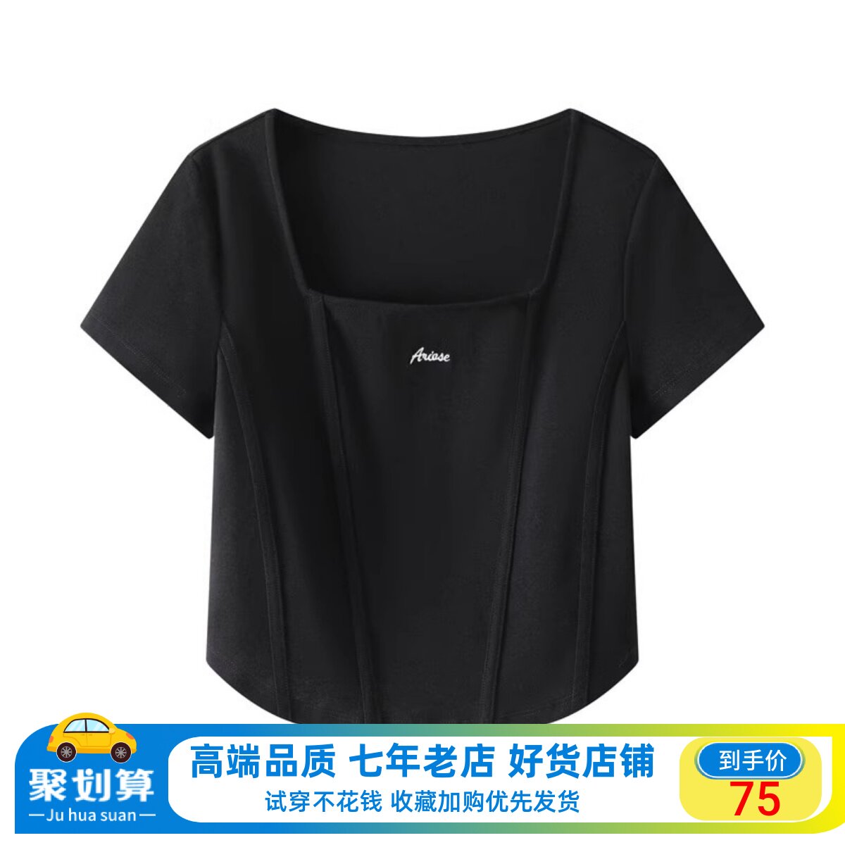 艾格官方旗舰店2024夏季新款短款黑色短袖T恤女修身上衣40326119