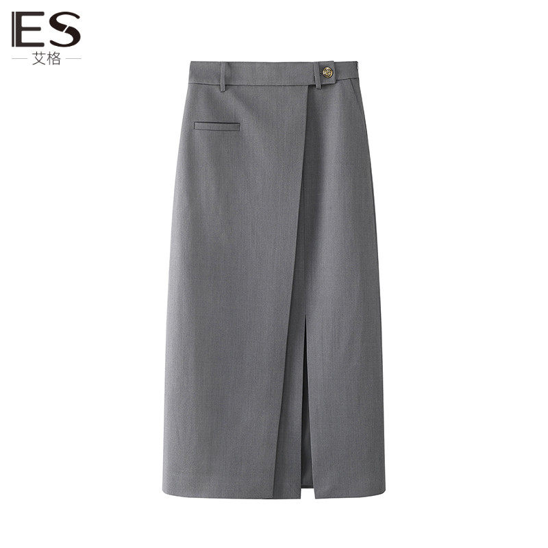 Etam艾格ES2024春季新款灰色半身裙女开叉长款裙子气质显瘦中长裙