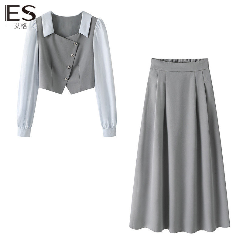 Etam/艾格ES2023秋季新款时尚套装裙子两件套女气质通勤上下套裙