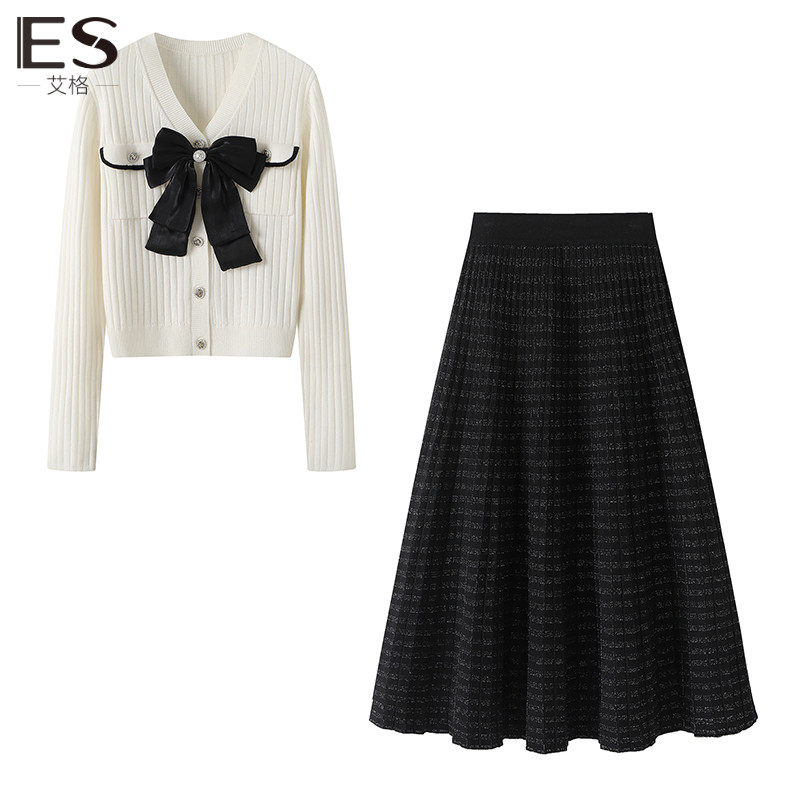 Etam/艾格ES蝴蝶结毛衣秋季新款女套装2023高级感时装两件套裙子
