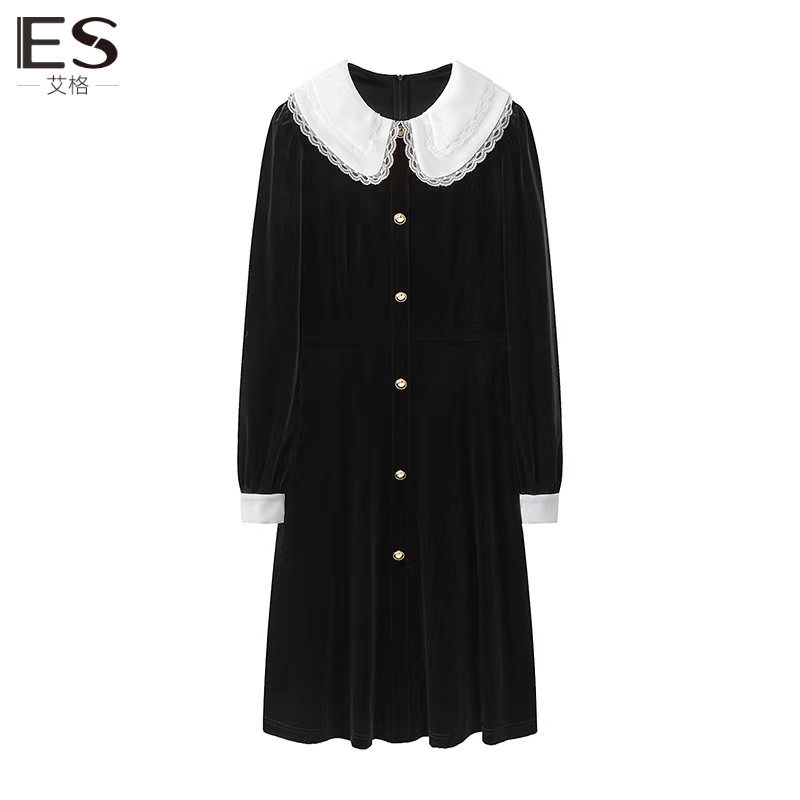 艾格连衣裙女丝绒小黑裙赫本2024春季新款独特漂亮裙子新年战袍
