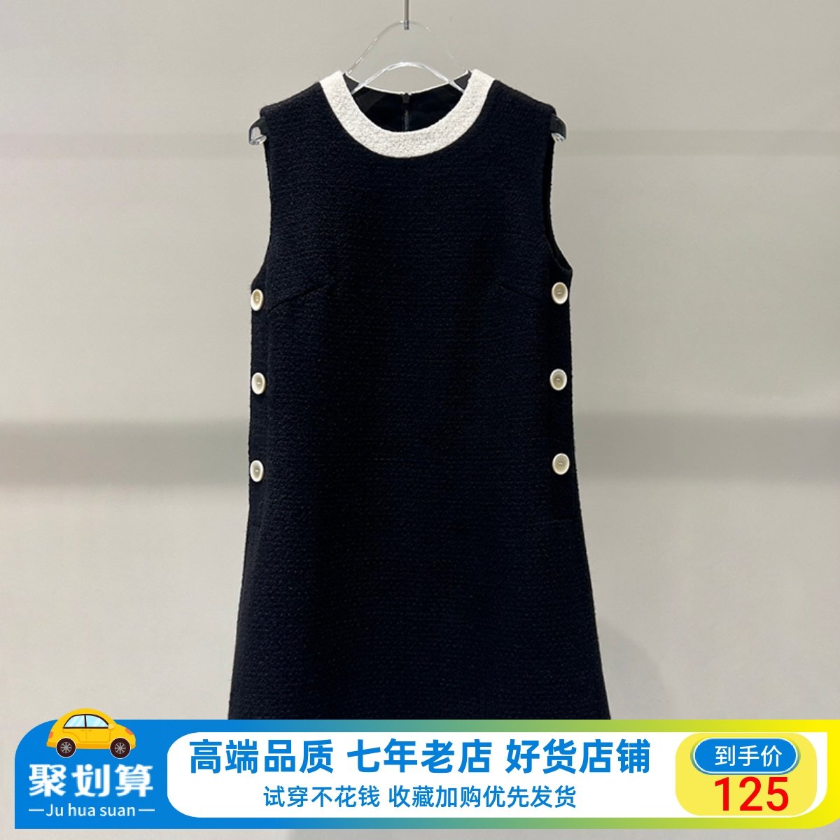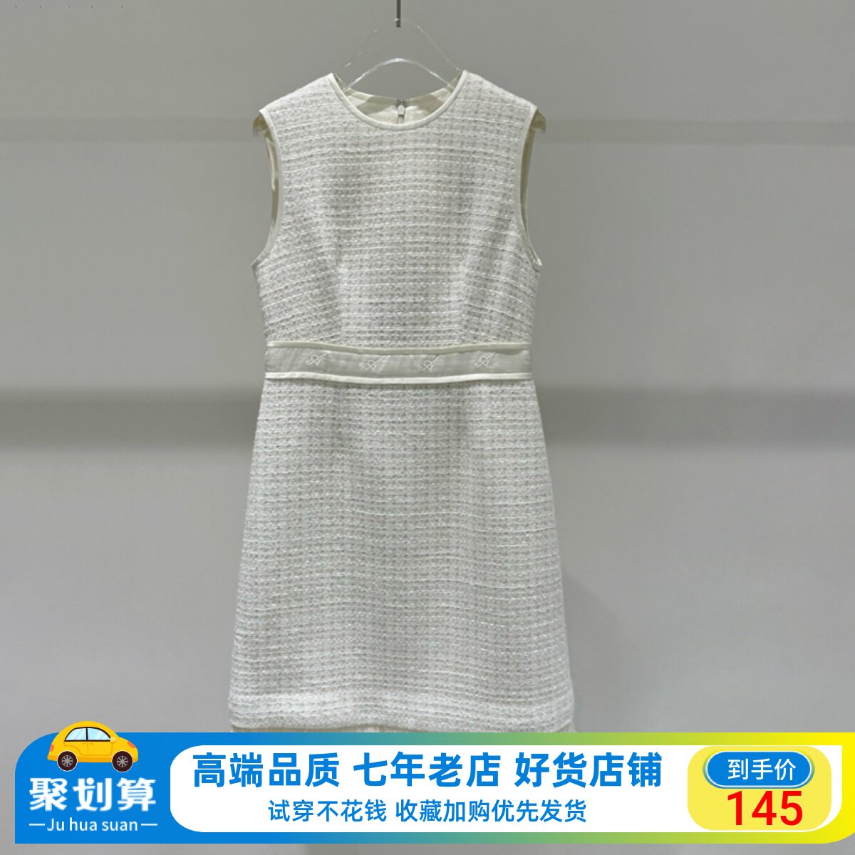 范艾诺丝裙子2024春新款百搭小香风粗花流苏无袖连衣裙女40129053