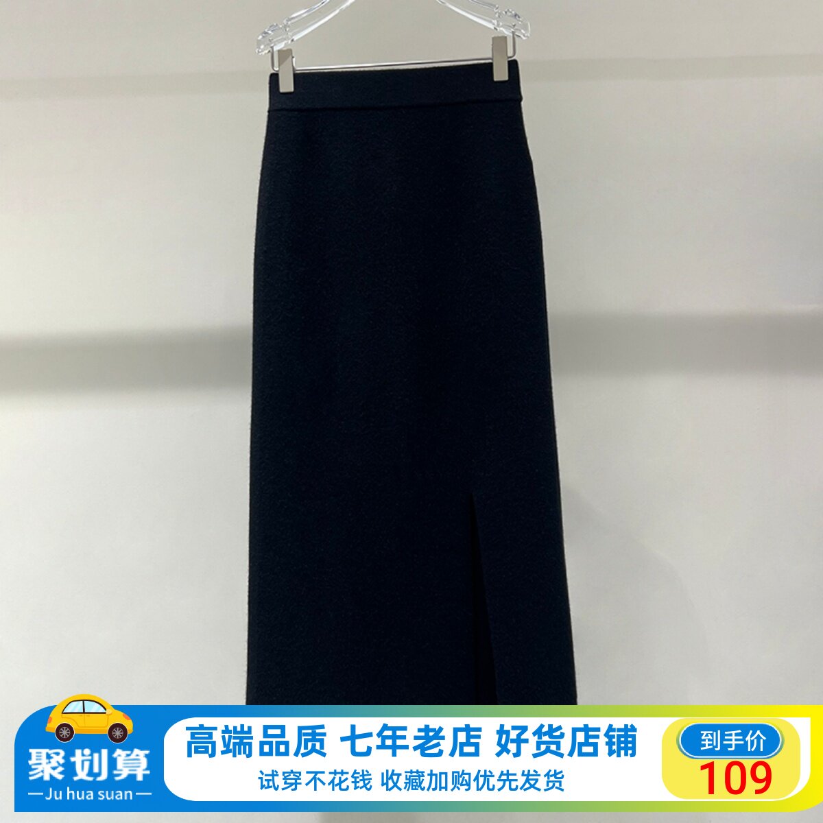 范艾诺丝2023冬季裙子百搭高腰松紧腰直筒开叉针织半身裙31213565