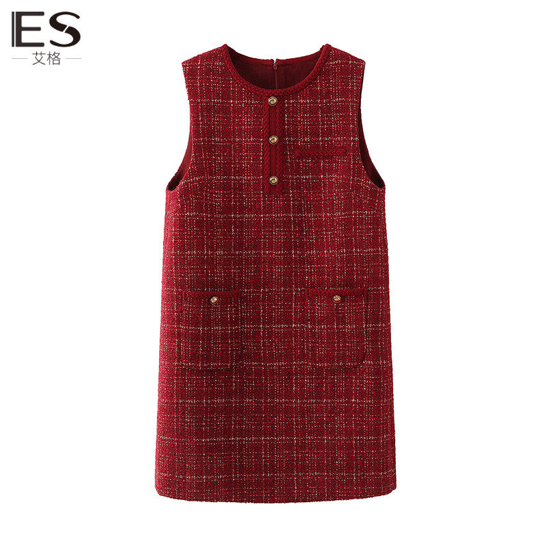 【跨年红色战袍】艾格小香风连衣裙女秋冬2024春新款无袖背心裙子