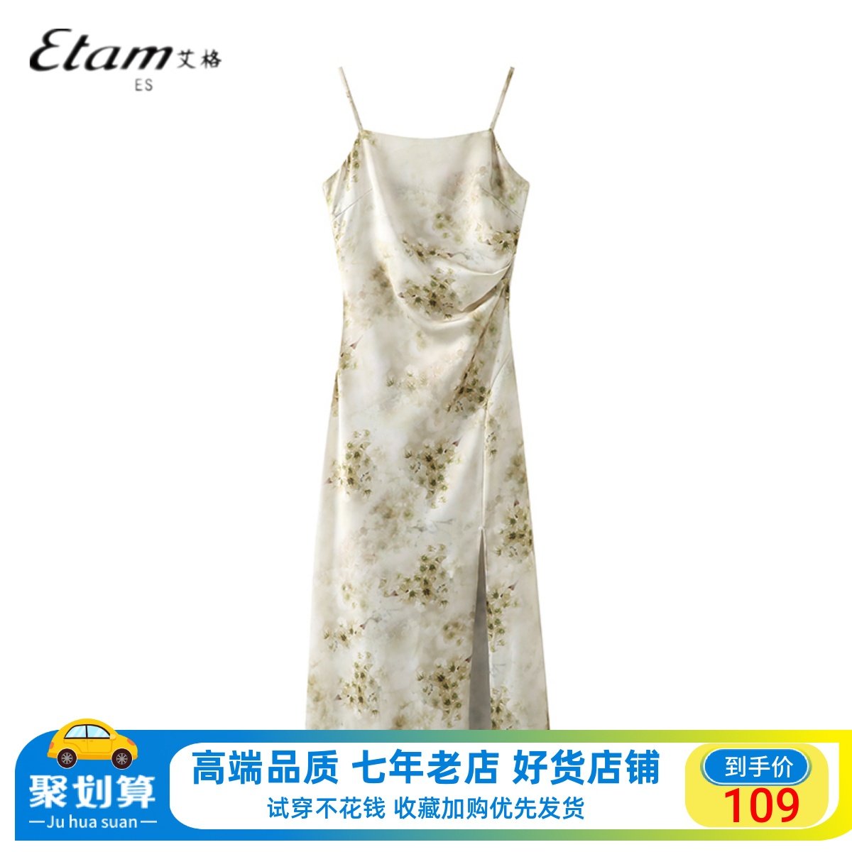 艾格高端精致连衣裙女春季2024新款女装甜美缎面碎花吊带度假裙子