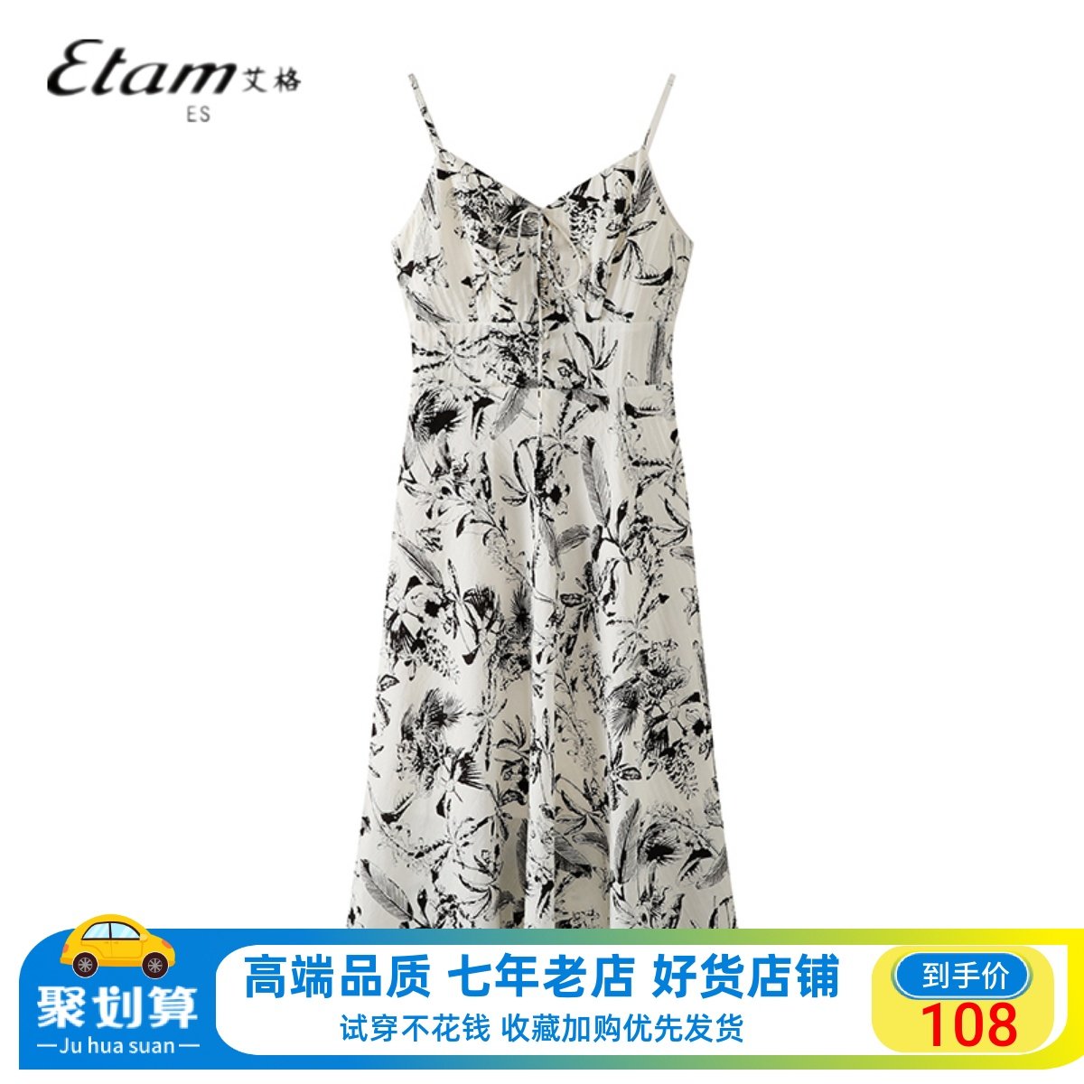 艾格碎花吊带连衣裙女2024春季新款度假高级感a字收腰v领无袖裙子