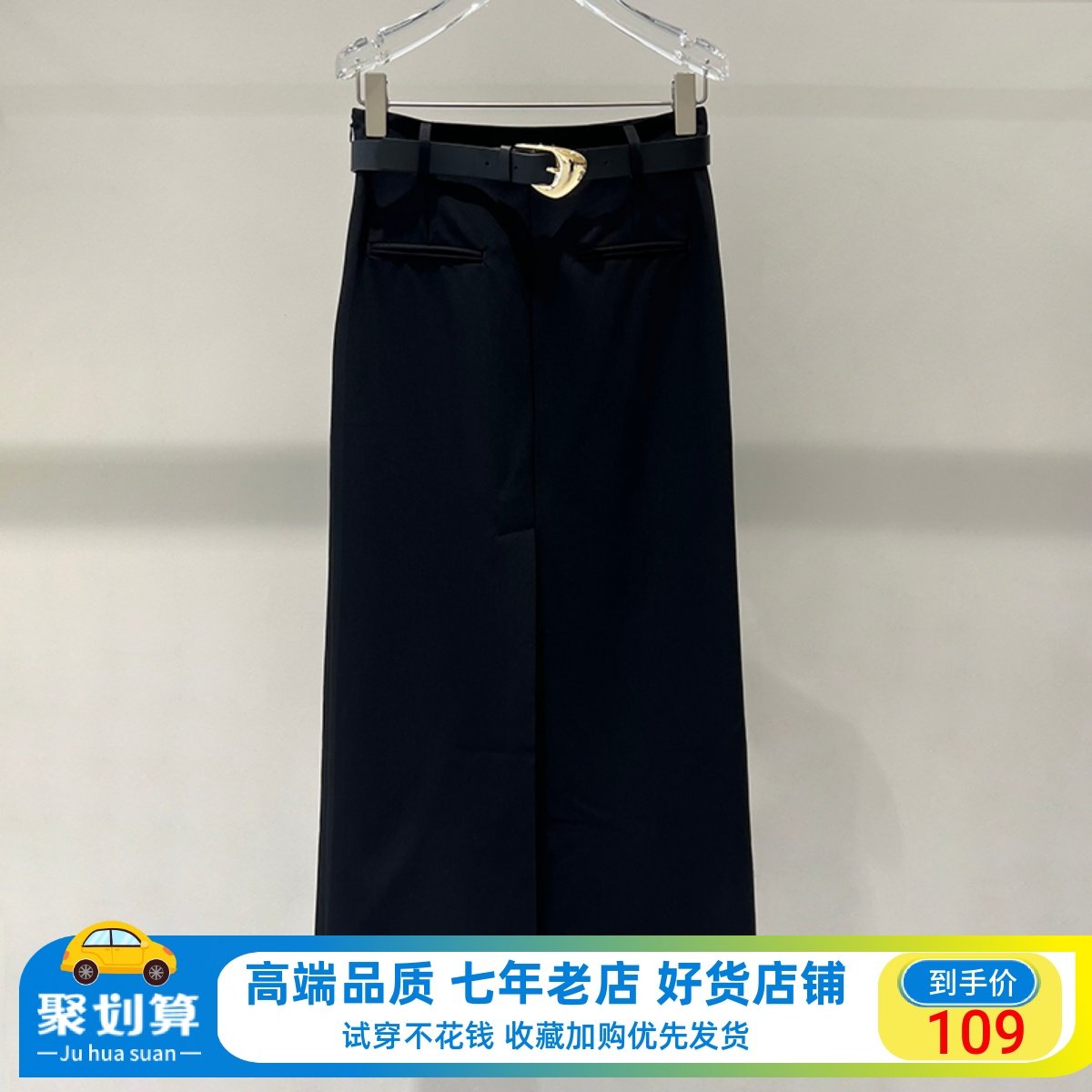 范艾诺丝裙子2024春新款黑色百搭高腰显瘦腰带开叉半身裙40123588