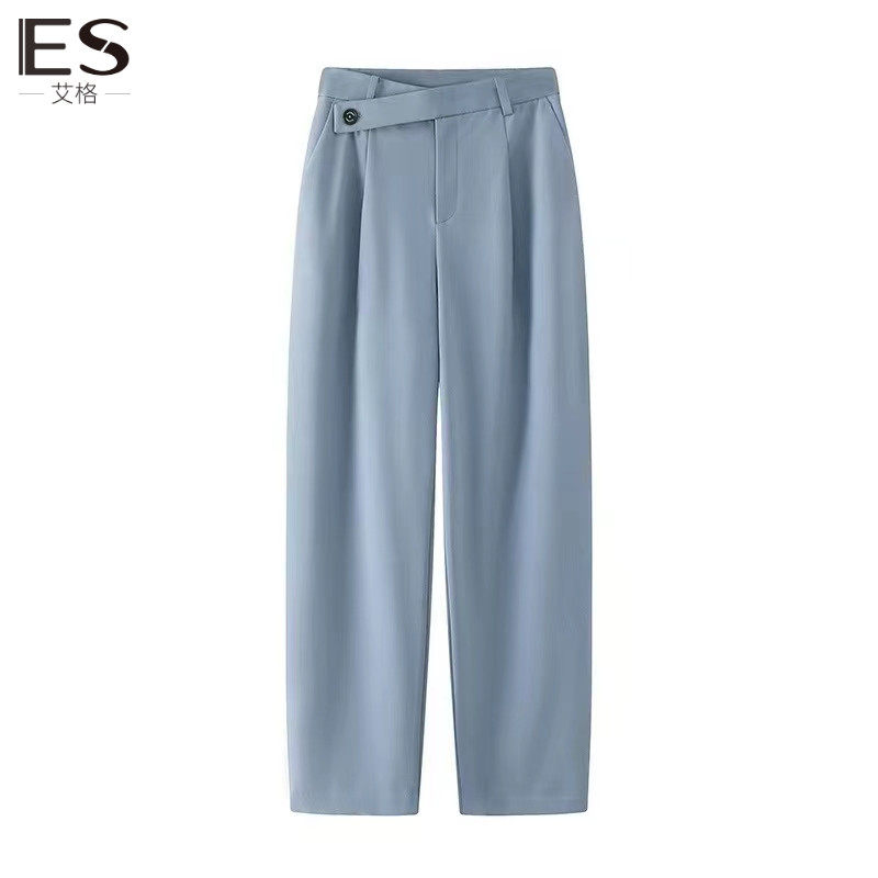 艾格/Etam2024早春款通勤百搭简约时尚斜腰头设计西装直筒烟管裤