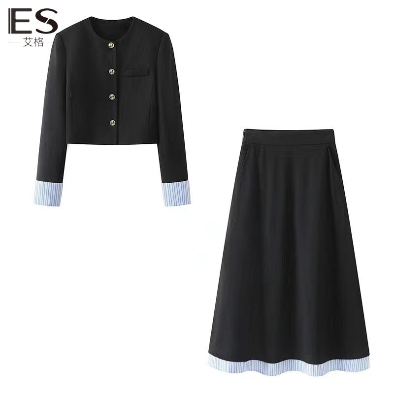 Etam艾格ES2024年春季新款条纹拼接西装外套针织半身裙两件套装女