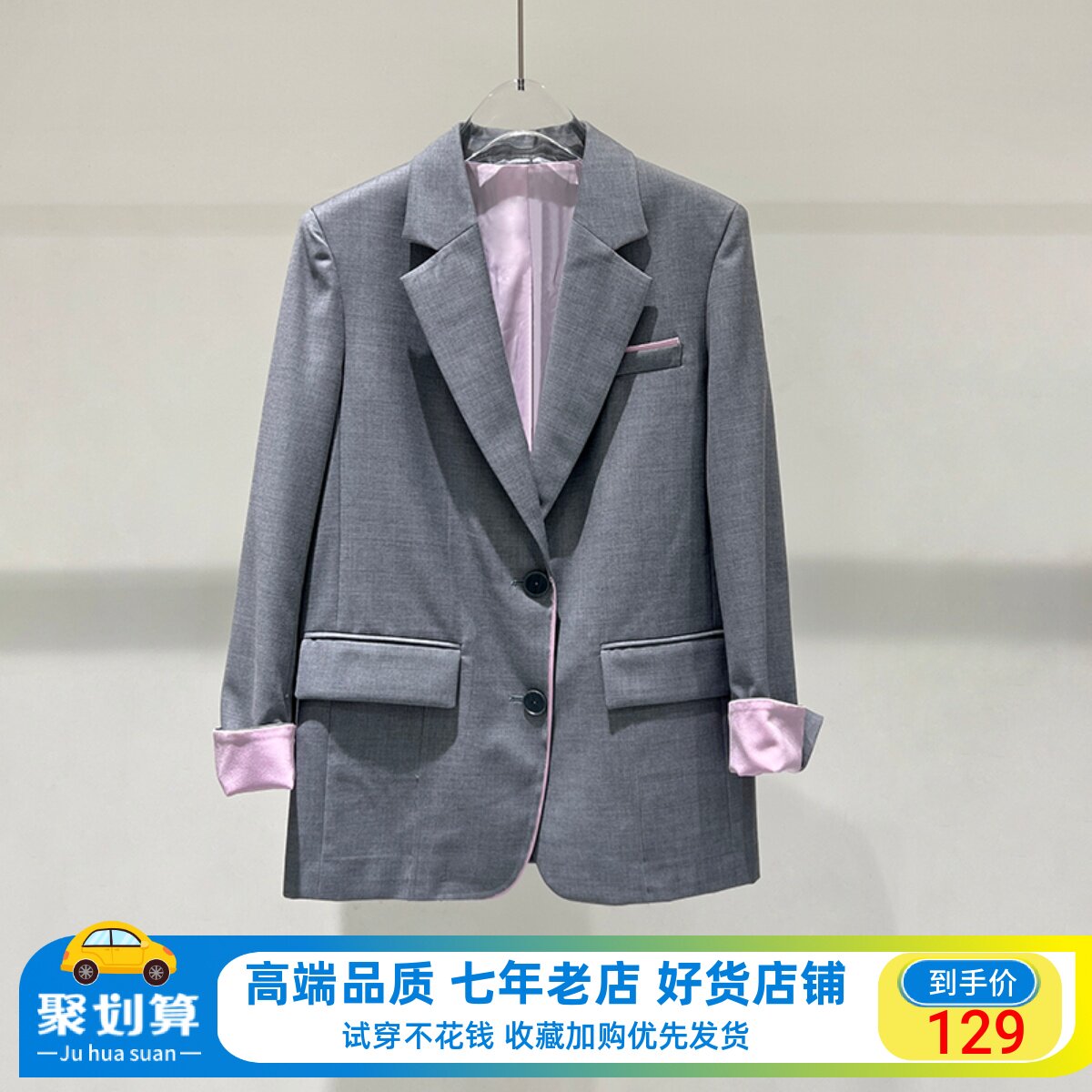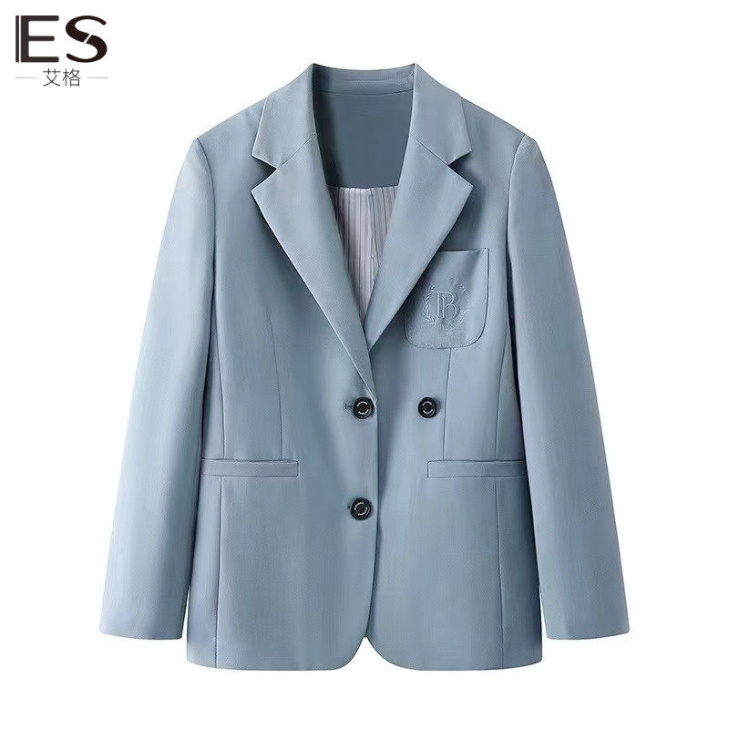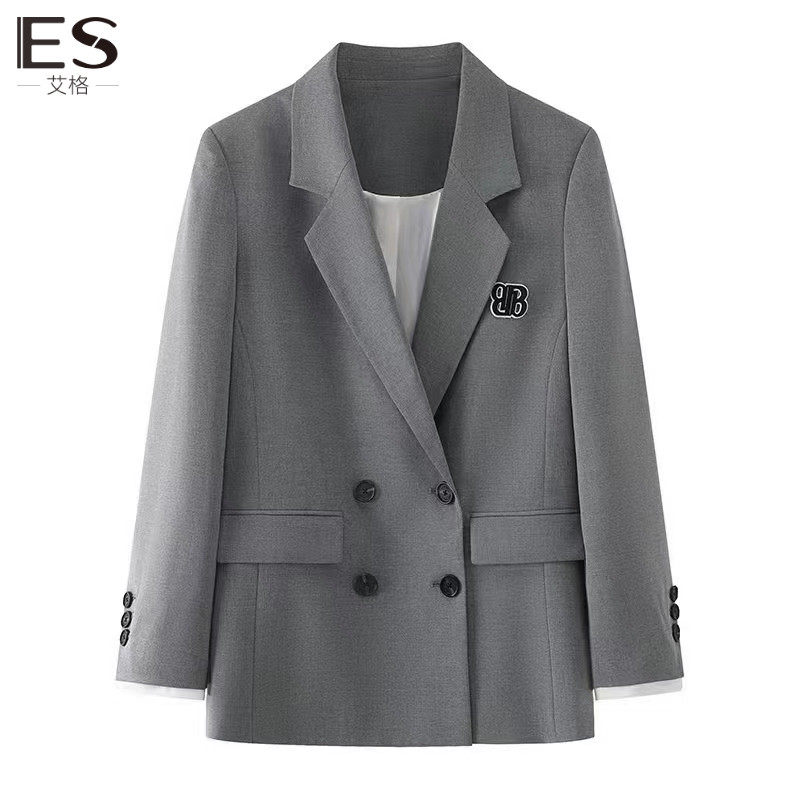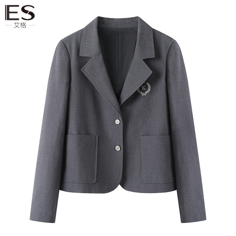 Etam/艾格ES西装外套女灰色小西服2023秋新款学院风休闲流行上衣