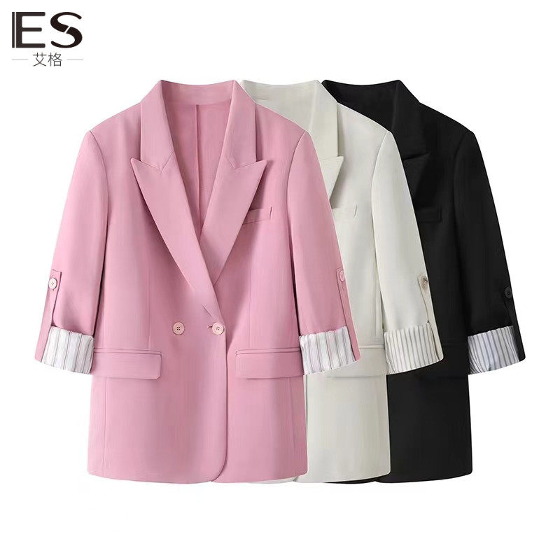 范艾诺丝2024春季新款时尚百搭休闲宽松七分袖西装外套40221370