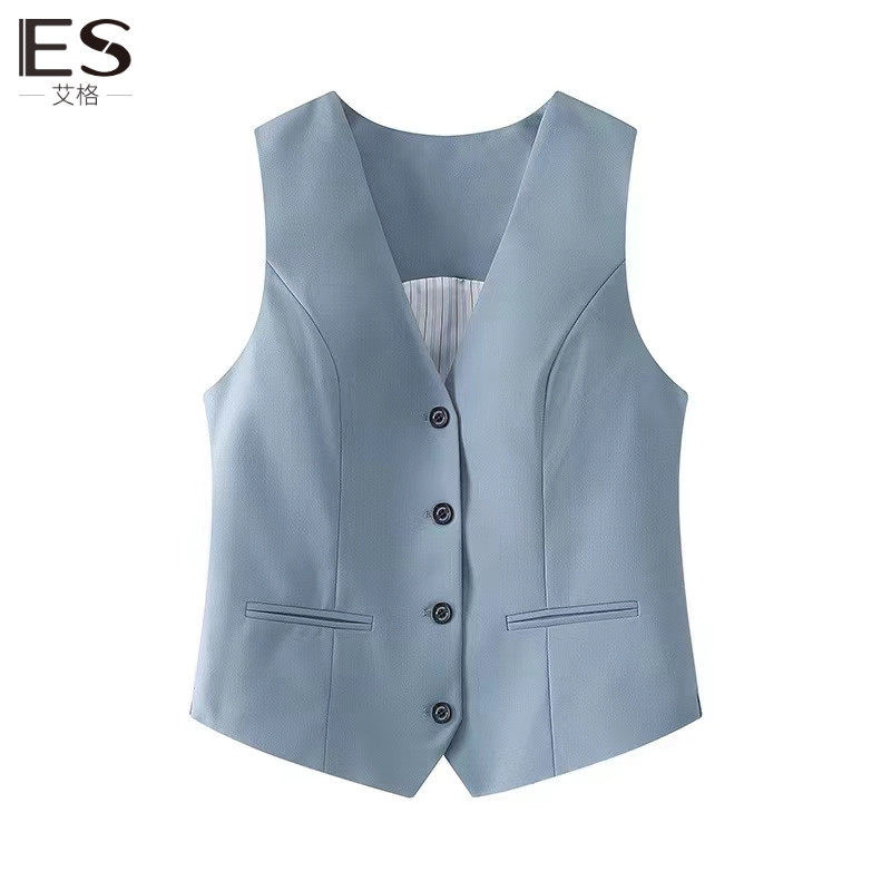 艾格/Etam2024早春新款简约时尚显瘦百搭纯色无袖修身西装小马甲
