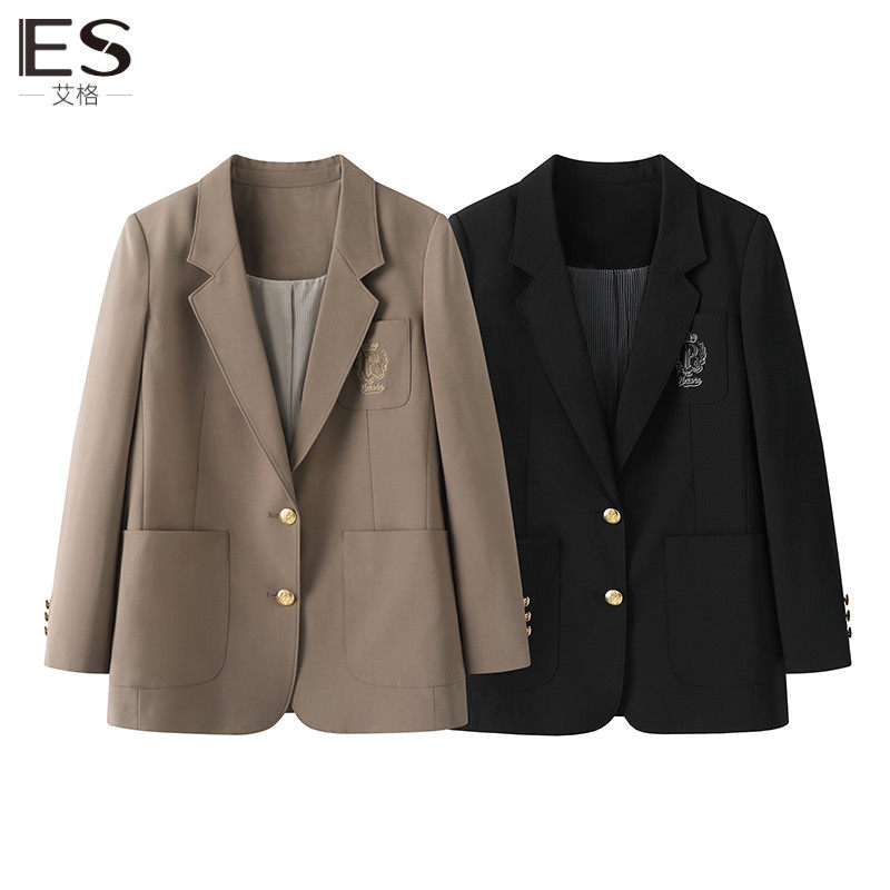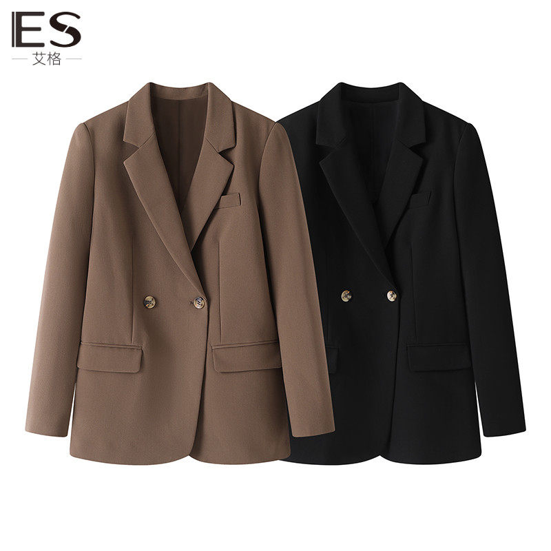 Etam/艾格ES西装外套女春秋咖色上衣 2023秋季新款长袖休闲小西服