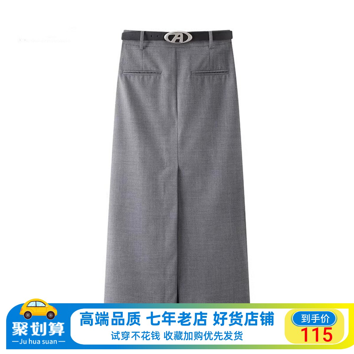 艾格官方旗舰店2024春新款高腰西装半身裙女灰色开叉长裙40313579