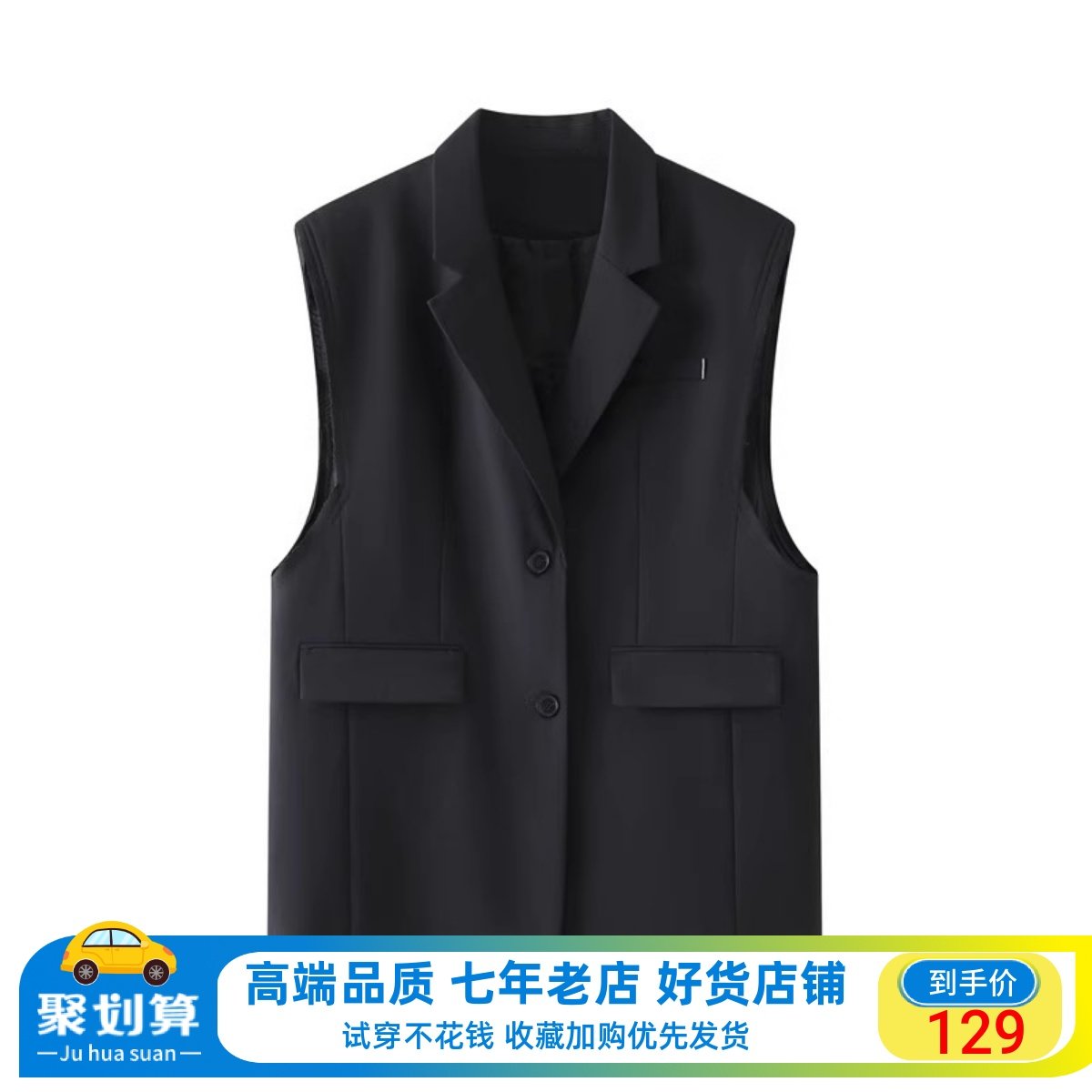范艾诺丝2023冬新款时尚百搭显瘦西装领无袖长款马甲外套31011582