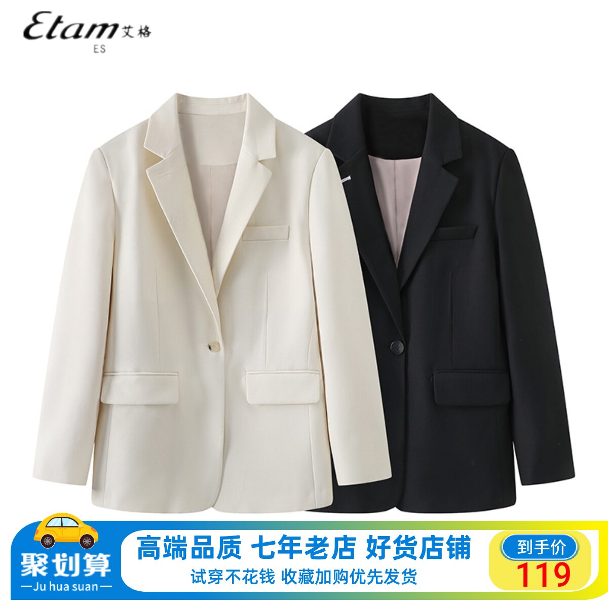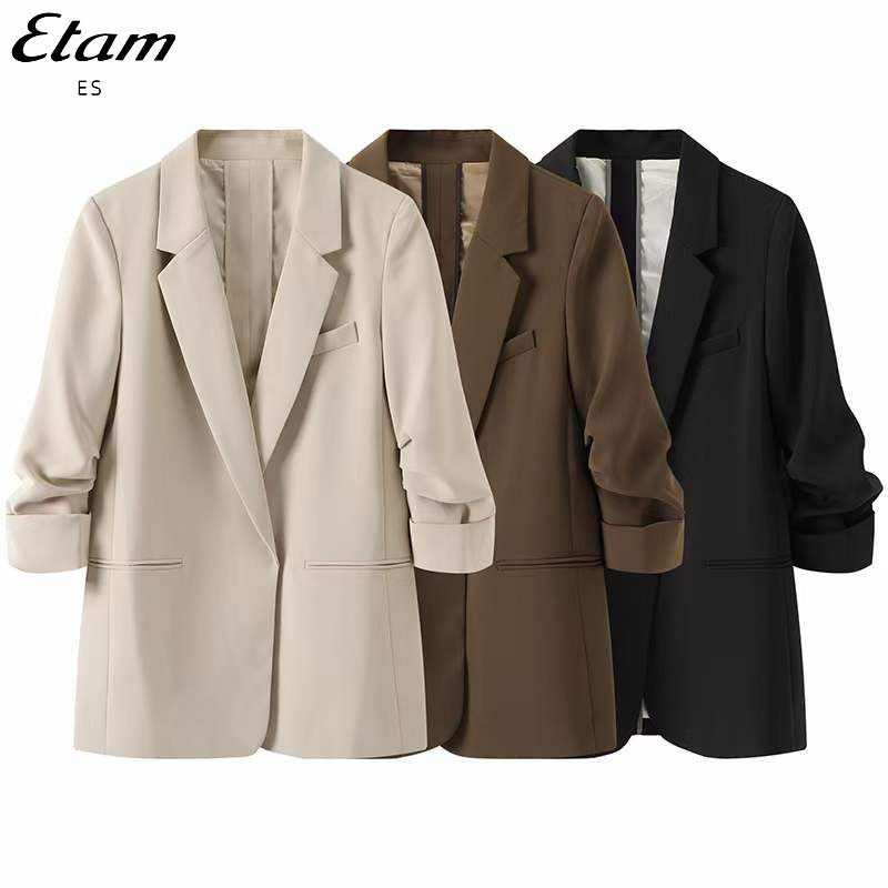 Etam/艾格旗下ES2023春季女士修身长袖显瘦休闲小西装外套西服女